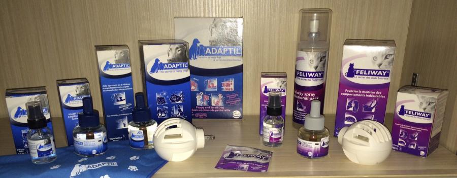 The product Feliway (for cats) or Adaptil (for dogs) can help your pet to face these stressful situations. (Product sold over the counter. Ask your veterinarian or animal health technician for advice).