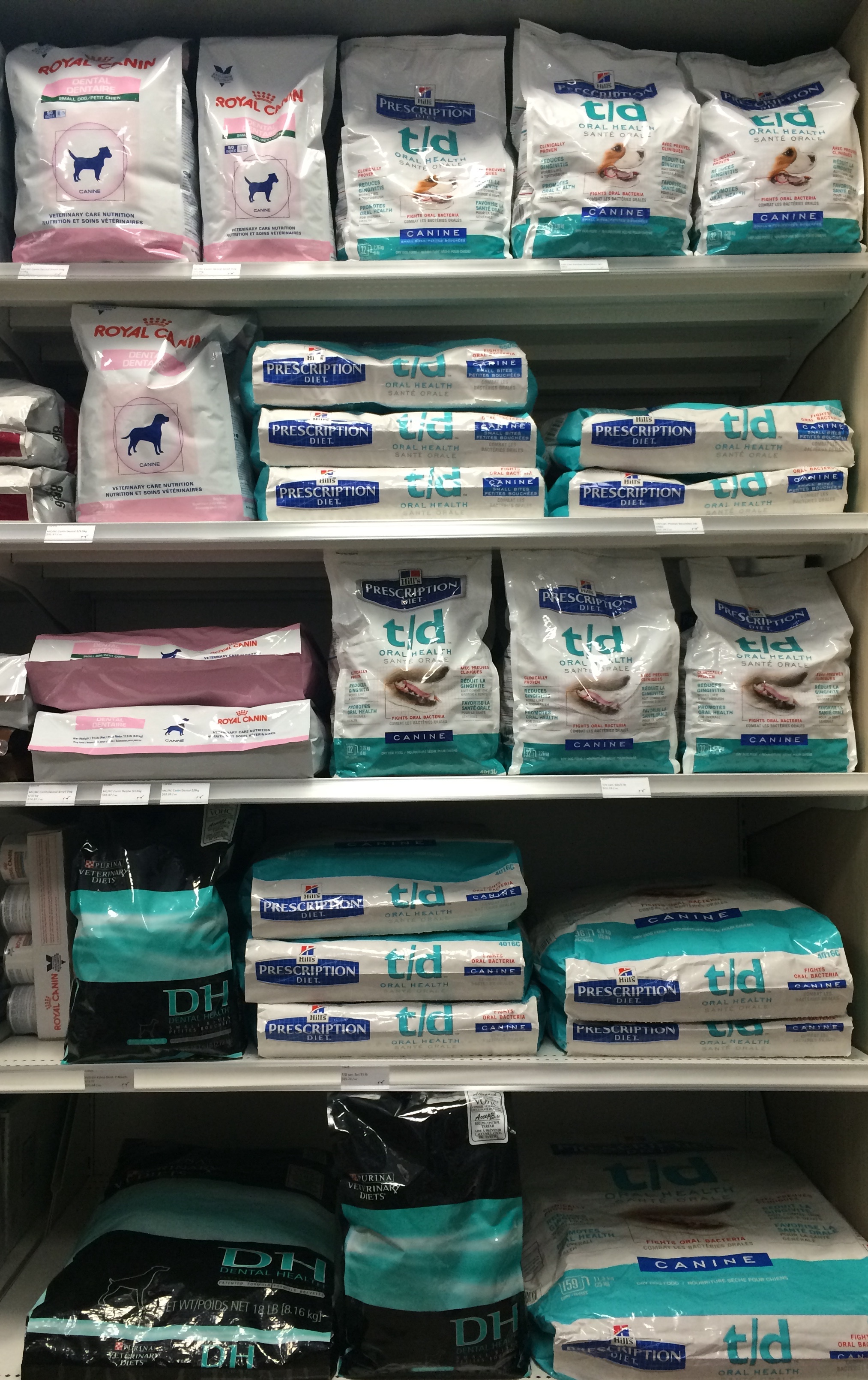 Some companies manufacture "dental foods" that act like a toothbrush (e.g. Hill's® Prescription Diet® t/d®, Royal Canin® Dental®, Purina PVD® DH®).