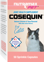 Cosequin is a glucosamine and chondroitine sulfate nutritionnal supplement capsule, formulated to support and maintain connective tissue and joint health in pets.