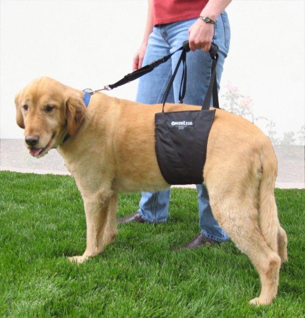 GentleLead helps support the dog`s weight and helps the dog during his rehabilitation.