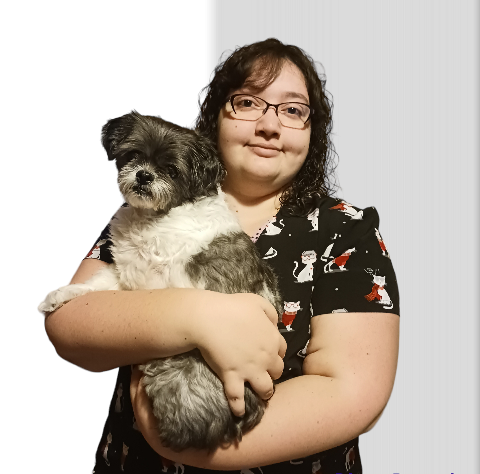 Elle a un chien Malshi (Bichon Maltais X Shih-Tzu) de 9 ans nommée Loukie, qui la garde toujours sur les orteils et oui, elle n'a que 3 jambes ! Nous sommes tous les deux des guerriers de la maladies et nous serons heureux de vous accueillir lors de votre visite à notre clinique !