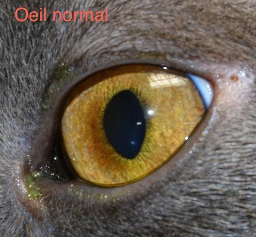 Cependant, le mélanome diffus de l’iris demeure la cause néoplasique (tumorale) la plus fréquente d’uvéite chez le chat. Il apparaît comme une tache brune-noire et aplatie ressemblant à une tache de rousseur. À ne pas confondre avec d’autres lésions bénignes d’apparence similaire comme la mélanose de l’iris et les kystes de l’uvée. Bien que le seul moyen de différencier ces conditions est la biopsie, on peut soupçonner la tumeur par son apparence veluteuse, la nature coalescente des lésions avec le temps ainsi que l’atteinte d’un seul œil. Lorsque les lésions envahissent la sclérotique (partie blanche du globe) et l’angle iridocornéen avec le développement subséquent de glaucome, l’indice de suspicion de mélanome augmente considérablement. Étant donné que le taux de métastases relié à cette tumeur est de 63%, il est aussi recommandé d’enlever l’œil.