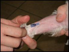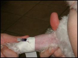 Finalement, un bandage sera enroulé autour de la patte de l'animal, par dessus le cathéter, pour le protéger encore plus.