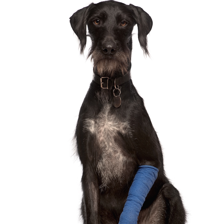 - Mauvaise odeur émanant de l’attelle, tache sur l’attelle qui apparaît de l’intérieur de celle-ci ou encore inconfort causé par l’attelle (l’animal essaie continuellement de la gruger ou de gruger sa patte). Ceci peut indiquer la présence d’une plaie cachée par l’attelle.