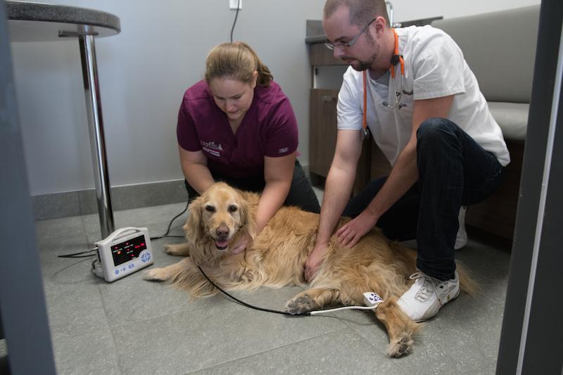 o La pression artérielle est mesurée à l’aide d’un manomètre relié à un brassard placé autour d’un membre ou de la base de la queue. L’important est que le brassard soit au même niveau que le cœur (l’animal doit donc être couché).