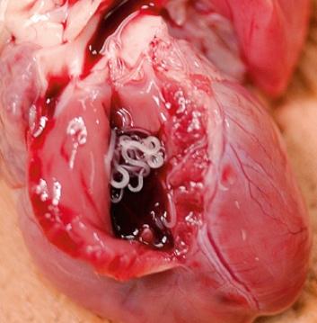 Le ver du coeur est un long parasite qui vit principalement dans les artères pulmonaires des canidés, mais aussi dans la partie droite du coeur et dans les veines caves chez les animaux de petite taille ou chez ceux qui sont infectés par un grand nombre de parasites. Son nom scientifique est Dirofilaria immitis.