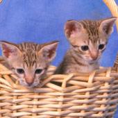Origine et histoire: Il est né d’un croisement entre une chatte métisse Siamois-Abyssin avec un mâle Siamois chocolat point. La provenance du nom Ocicat résulte en une contraction du mot Ocelot (chat sauvage d’Amérique à robe tachetée) et du mot cat (chat). Il ressemble à un fauve miniature avec sa robe tachetée. Une éleveuse dans le Michigan, Virginia Daly, croisa, en 1964, une chatte métisse Siamois-Abyssin avec un Siamois chocolat point. Par la suite, un éleveur du nom de Tom Brown croise des Abyssins, des Siamois, des Orientaux tachetés, des Maus égyptiens et des American Shorthairs pour aboutir à l’Ocicat. La race est reconnue aux États-Unis en 1986 par la C.F.A. et la T.I.C.A. édite son standard en 1988.