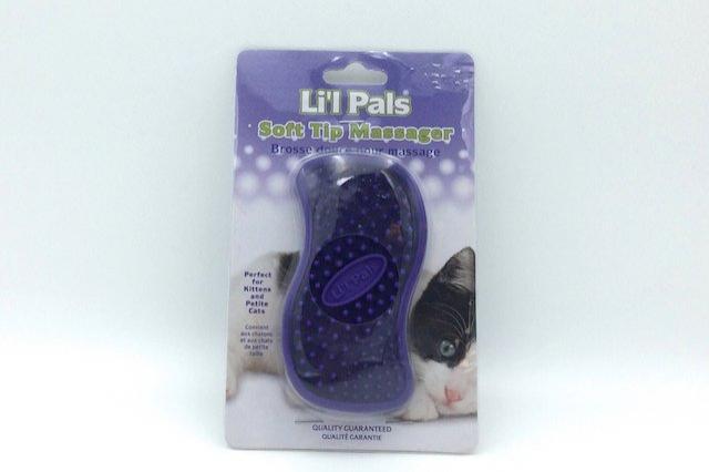 Brosse douce caoutchouteuse à double face faite de pointes arrondies. D’un côté, les pointes sont courtes et servent à masser la peau. De l’autre côté, les pointes sont longues et servent à enlever les poils lâches ce qui aide à prévenir l’accumulation de boules de poils dans le tube digestif, à diminuer la perte de poils et à améliorer le lustre naturel du pelage. La brosse fonctionne autant sur les poils mouillés que sur les poils secs. Elle se tient facilement et confortablement dans la main.